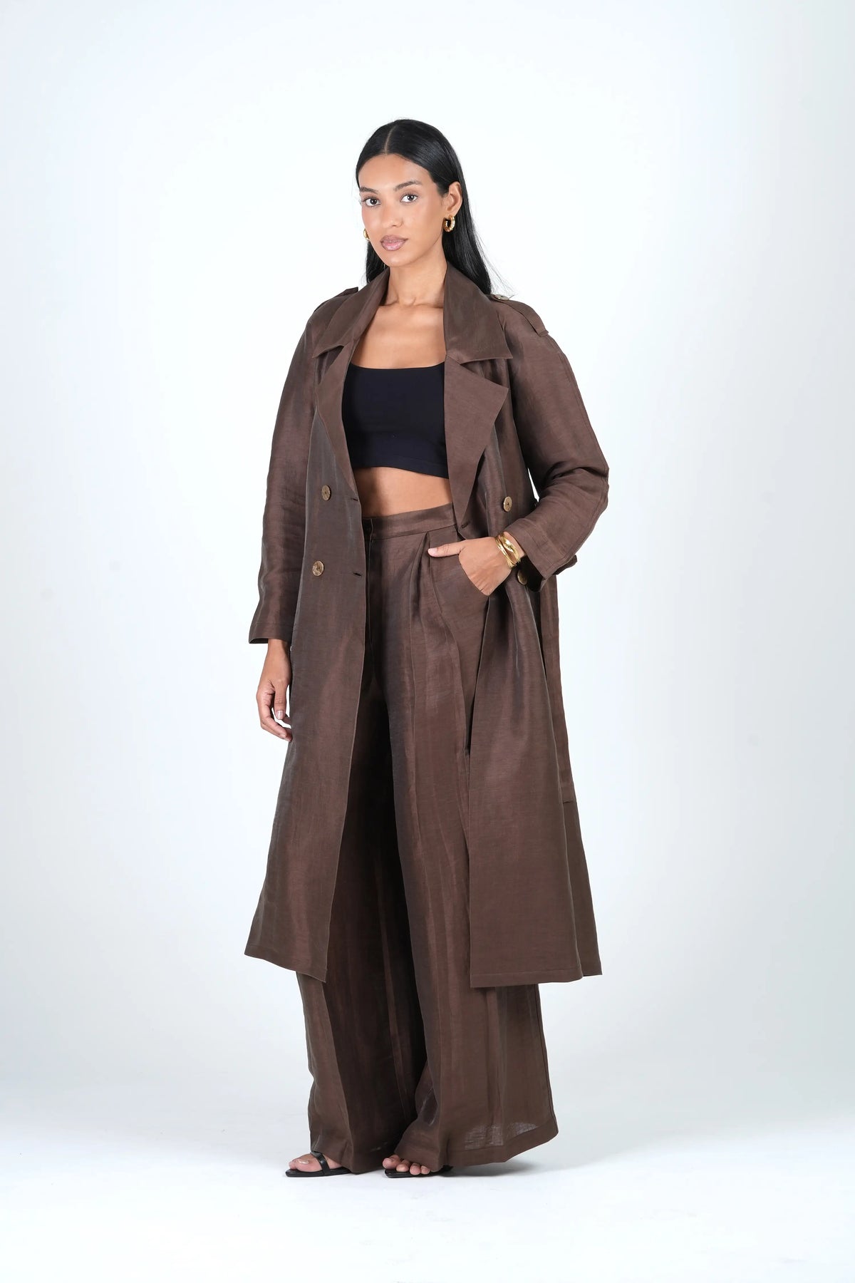 Shop Luxe linen blends , trench coats, and refined cord sets.